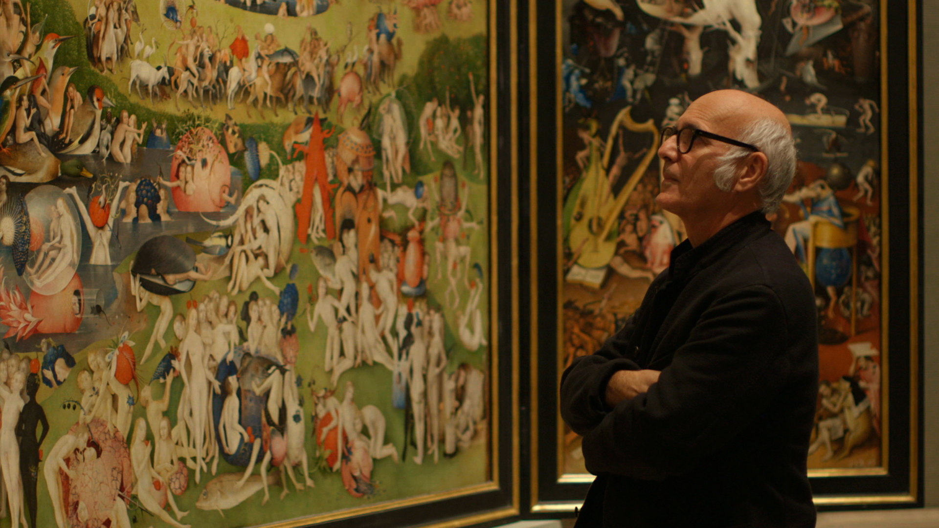 Съёмки проходили на юбилейной выставке Иеронима Босха в Прадо и в музейном «закулисье»: в фильме вы увидите уникальные кадры реставрации «Сада земных наслаждений» и даже то, как осуществлялось рентгенографическое исследование триптиха. Кураторы и реставраторы рассказывают о контексте эпохи и об уникальности фигуры Босха в истории искусства. Спикеры, среди которых писатели Орхан Памук и Салман Рушди, оперная дива Рене Флеминг и композитор Людовико Эйнауди, проводят неожиданные параллели с другими произведениями и даже видами искусства и рассказывают о том, какое влияние Босх и причудливые, фантастические и подчас страшные образы «Сада земных наслаждений» оказали на их творчество.