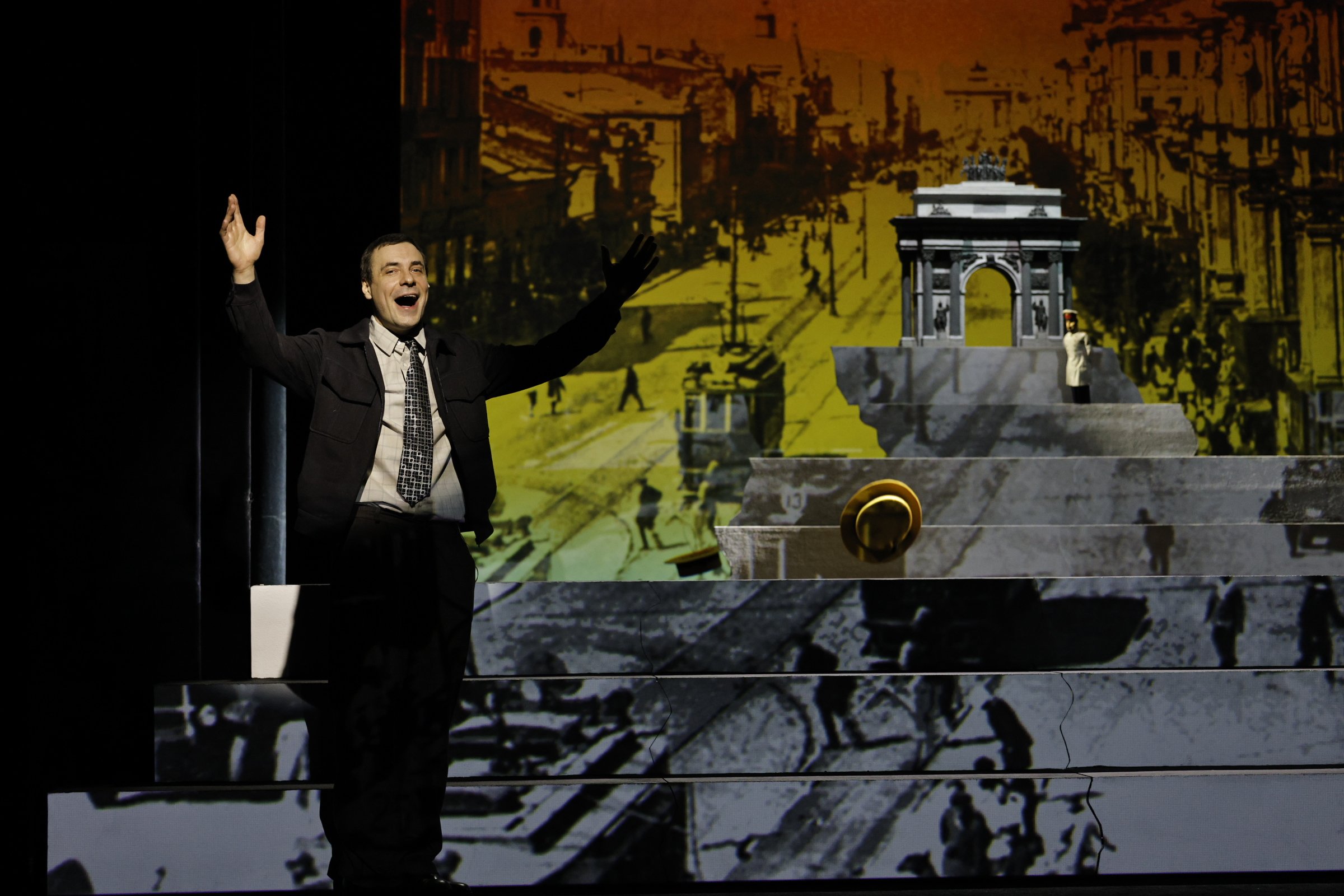 Постановка Государственного академического центрального театра кукол им. С.В.Образцова. На фоне кадров исторической кинохроники и рисунков Сергея Образцова оживают в куклах легенды театра и кино: Любовь Орлова и Лидия Русланова, Чарли Чаплин и Леонид Утесов, Соломон Михоэлс и Федор Шаляпин, а также другие исторические знаменитости. В основе спектакля — автобиографическая книга С.В.Образцова «По ступенькам памяти». Как складывалась история жизни великого кукольника, прожившего весь ХХ век, создателя крупнейшего в мире театра кукол? Создатели спектакля «Я — Сергей Образцов» раскрывают занавес времени и представляют жизнь гения как портрет на фоне эпохи, эпичное и одновременно исповедально-лирическое путешествие по ступенькам памяти. Необыкновенная жизнь рассказана простыми обыкновенными словами, эпизодами будней: первая кукла, первая любовь, первые творческие опыты и гастроли… Создание театра, годы войны и День Победы, репетиции и премьеры, юбилейный вечер народного артиста СССР и любимая песня мамы… Евгений Цыганов в роли гения ХХ века не только преображается сам, но своей игрой меняет реальность, позволяя зрителям путешествовать и во времени, и в жизни, в чувствах и мыслях Образцова. Герой рассказывает о театре и людях, о приметах быта и сменах эпох, а перед зрителями — подчас с улыбкой, подчас до слез — раскрывается история становления души художника. Портретные куклы самых ярких актеров и знаменитостей играют на фоне обобщенных декораций — лестницы-подиума из белоснежных ступеней. Куклы становятся метафорами человеческих страстей, век и человек соединяются, а великий Сергей Образцов становится собеседником сегодняшних зрителей.