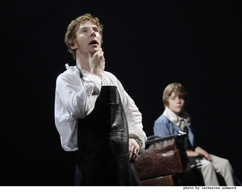 Начало десятых стало в карьере Дэнни Бойла временем экспериментов. Летом 2012 года он показал телеаудитории планеты свое самое грандиозное зрелище – церемонию открытия Лондонской Олимпиады; а за полтора года до этого, зимой 2011-го, триумфально вернулся в театр «Франкенштейном». Собственно, Бойл и начинал карьеру как театральный режиссер: до того, как уйти на телевидение в 1987 году, он поставил несколько спектаклей в «Ройал Корте», и пять – в Королевской Шекспировской компании. Также как церемония открытия Олимпиады, «Франкенштейн» стал триумфом Бойла-концептуалиста. Задействовав в качестве автора сценической адаптации «Франкенштейна» драматурга Ника Дира, режиссер придумал гениальный ход – чередовать Камбербэтча и Ли Миллера на главных ролях создания и доктора. Помимо нешуточного финансового бонуса (дабы получить исчерпывающее представление о спектакле, зрителям надо ходить в театр два вечера подряд!), эта идея несет в себе и революционное художественное измерение. Ежевечерне тасуя человеческое и чудовищное, заставляя актеров постоянно сбрасывать одну шкуру и залезать в другую, Бойл создает уникальный стерео-эффект сценической правды, отменяя ее однозначность и восстанавливая естественное многообразие точек зрения на происходящие события и саму жизнь. Меняясь ролями, Камбербэтч и Ли Миллер демонстрируют высший актерский пилотаж: трудно представить, что кто-то из зрителей, посмотрев один из вариантов спектакля, не захочет прийти и посмотреть второй. Существует мнение, что Ли Миллер-создание – наиболее яркий из двух, а Камбербэтч органичнее в роли доктора, но чтобы согласиться или опровергнуть это утверждение, надо увидеть в каждой из ролей их обоих. Неудивительно, что актеры разделили между собой две главные лондонские театральные награды – премию Лоуренса Оливье и премию газеты Evening Standard. Спектакль уникален и своей сценографией: круглая сцена, построенная дизайнером Марком Тилдесли, придуманный им модернистский реквизит (родовая «плацента», из которой рождается создание, и рассекающий по сцене паровоз) навсегда врезаются в память. Музыку к спектаклю написали постоянные саундтрекеры Бойла, электронный дуэт Underworld, а на второстепенных ролях можно заметить много известных лиц: прежде всего, звезду бондианы Наоми Харрис в роли Элизабет и валлийского ветерана сцены Карла Джонсона в роли слепого Де Лейси.
