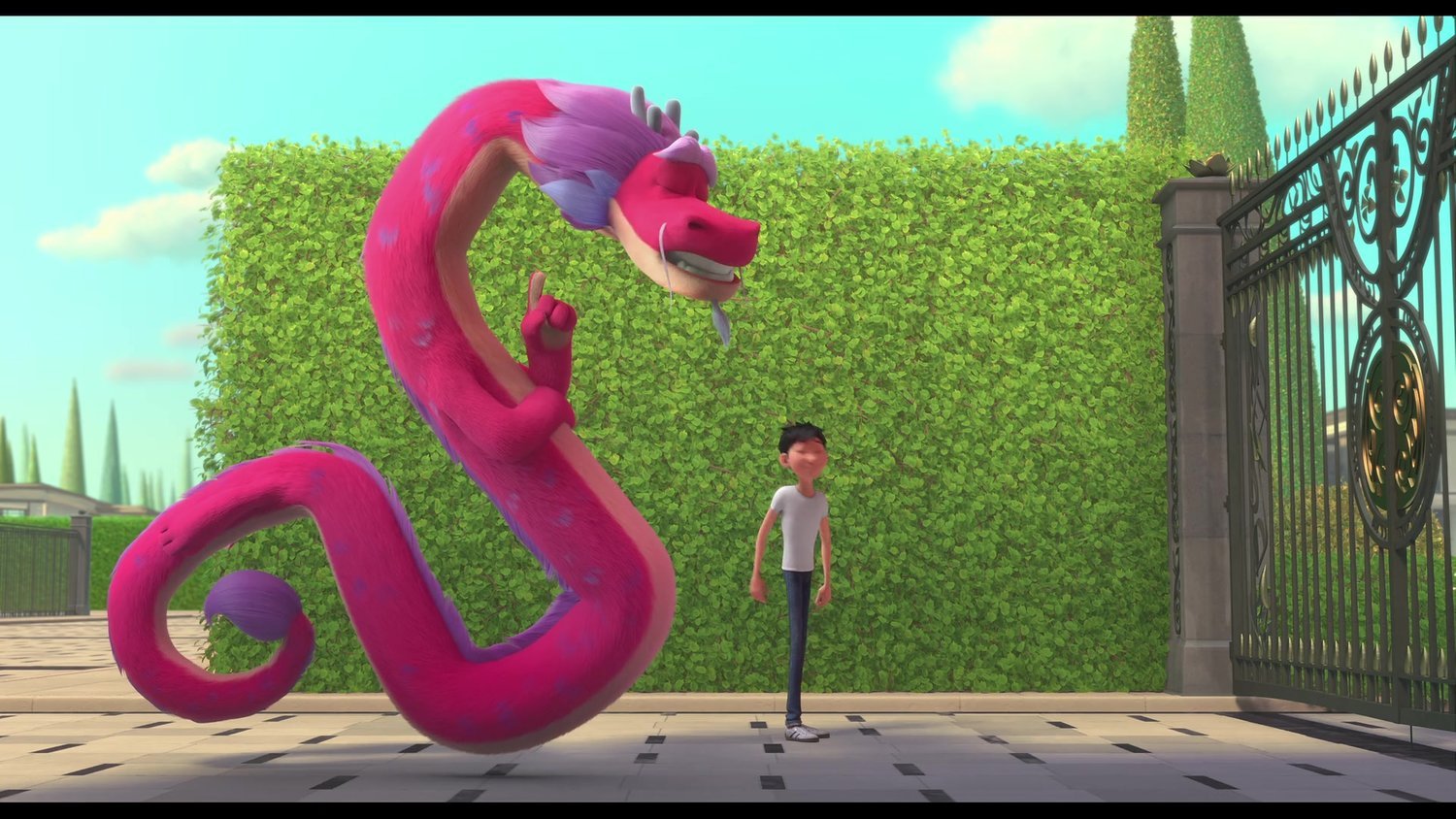 Обычный парень случайно высвобождает из чайника розового дракона, исполняющего желания. Дракон много веков просидел в заточении, и теперь ему ужасно интересно, как за это время изменился мир.